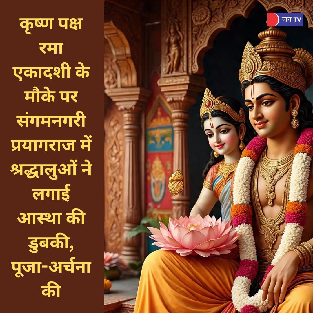 रमा एकादशी के मौके पर संगमनगरी प्रयागराज में श्रद्धालुओं ने लगाई आस्था की डुबकी, पूजा-अर्चना की