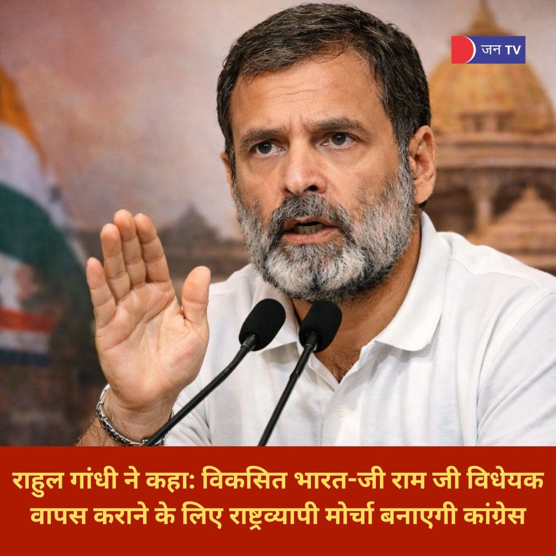 राहुल गांधी ने कहा: विकसित भारत-जी राम जी विधेयक वापस कराने के लिए राष्ट्रव्यापी मोर्चा बनाएगी कांग्रेस --- राहुल गांधी ने ‘एक्स’ पर पोस्ट किया, ‘‘शुक्रवार रात मोदी सरकार ने एक ही दिन में मनरेगा के बीस वर्षों को ध्वस्त कर दिया। जी राम जी विधेयक, मनरेगा का कोई ‘‘पुनर्गठन’’ नहीं है। यह अधिकार-आधारित, मांग-आधारित गारंटी को खत्म कर इसे एक सीमित योजना में बदल देता है, जिसे दिल्ली से नियंत्रित किया जाएगा।’’