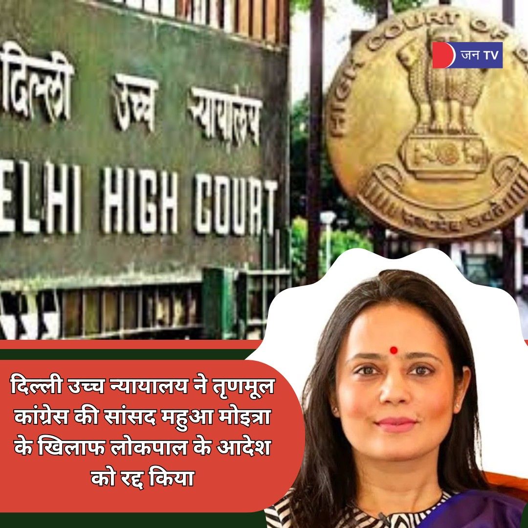 दिल्ली उच्च न्यायालय ने तृणमूल कांग्रेस की सांसद महुआ मोइत्रा के खिलाफ लोकपाल के आदेश को रद्द किया --- दिल्ली उच्च न्यायालय ने शुक्रवार को लोकपाल के उस आदेश को रद्द कर दिया, जिसमें सीबीआई को तृणमूल कांग्रेस की सांसद महुआ मोइत्रा के खिलाफ कथित तौर पर पैसे लेकर सवाल पूछने के मामले में आरोप पत्र दाखिल करने की अनुमति दी गई थी।
