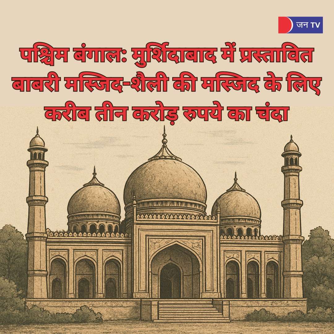 पश्चिम बंगाल: मुर्शिदाबाद में प्रस्तावित बाबरी मस्जिद-शैली की मस्जिद के लिए करीब तीन करोड़ रुपये का चंदा --- पश्चिम बंगाल में तृणमूल कांग्रेस के निलंबित विधायक हुमायूं कबीर द्वारा मुर्शिदाबाद में प्रस्तावित बाबरी मस्जिद-शैली की मस्जिद के लिए मिले चंदे की राशि लगभग तीन करोड़ रुपये तक पहुंची