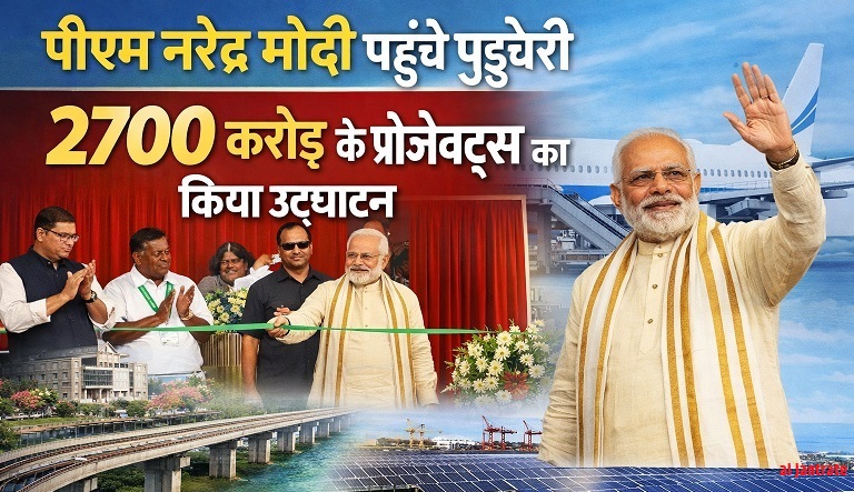 मोदी पहुंचे पुडुचेरी, 2700 करोड़ के प्रोजेक्ट्स का किया उद्घाटन