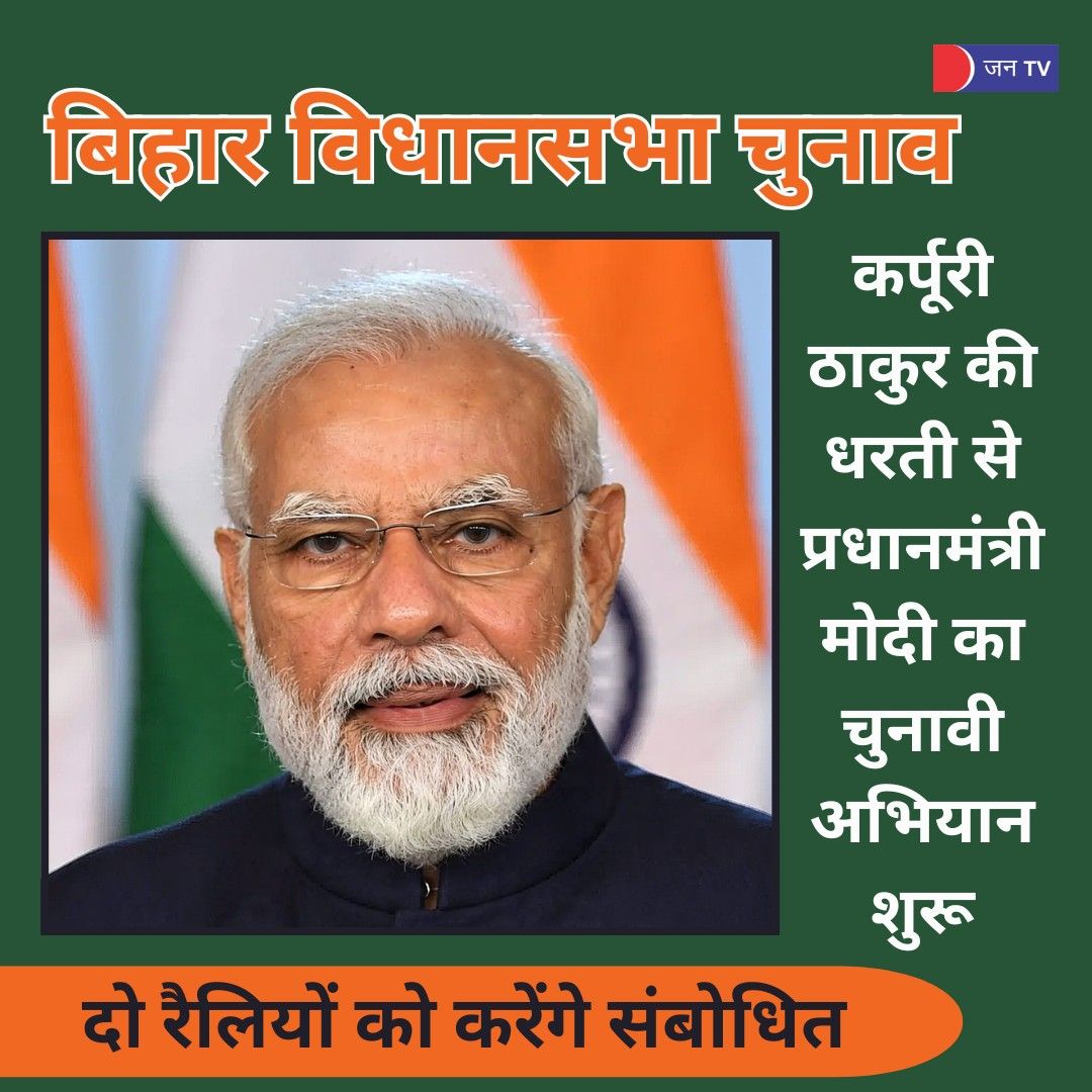 बिहार विधानसभा चुनाव: कर्पूरी ठाकुर की धरती से प्रधानमंत्री मोदी का चुनावी अभियान शुरू, दो रैलियों को करेंगे संबोधित --- बिहार विधानसभा चुनाव 2025 में प्रधानमंत्री नरेंद्र मोदी और केंद्रीय गृह मंत्री अमित शाह जनसभाएं संबोधित करेंगे