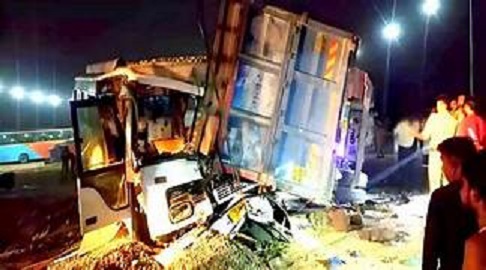 हाईटेंशन लाइन से टकराकर जल उठी बस,दो की मौत,12 से ज्यादा लोग झुलसे