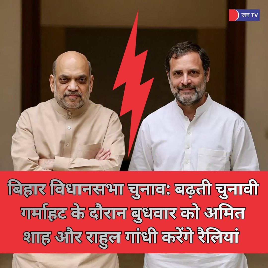बिहार विधानसभा चुनाव: बढ़ती चुनावी गर्माहट के दौरान बुधवार को अमित शाह और राहुल गांधी करेंगे रैलियां --- बुधवार को कई दिग्गज नेता अपने-अपने उम्मीदवारों के समर्थन में राज्य के विभिन्न जिलों में रैलियों का आयोजन करेंगे