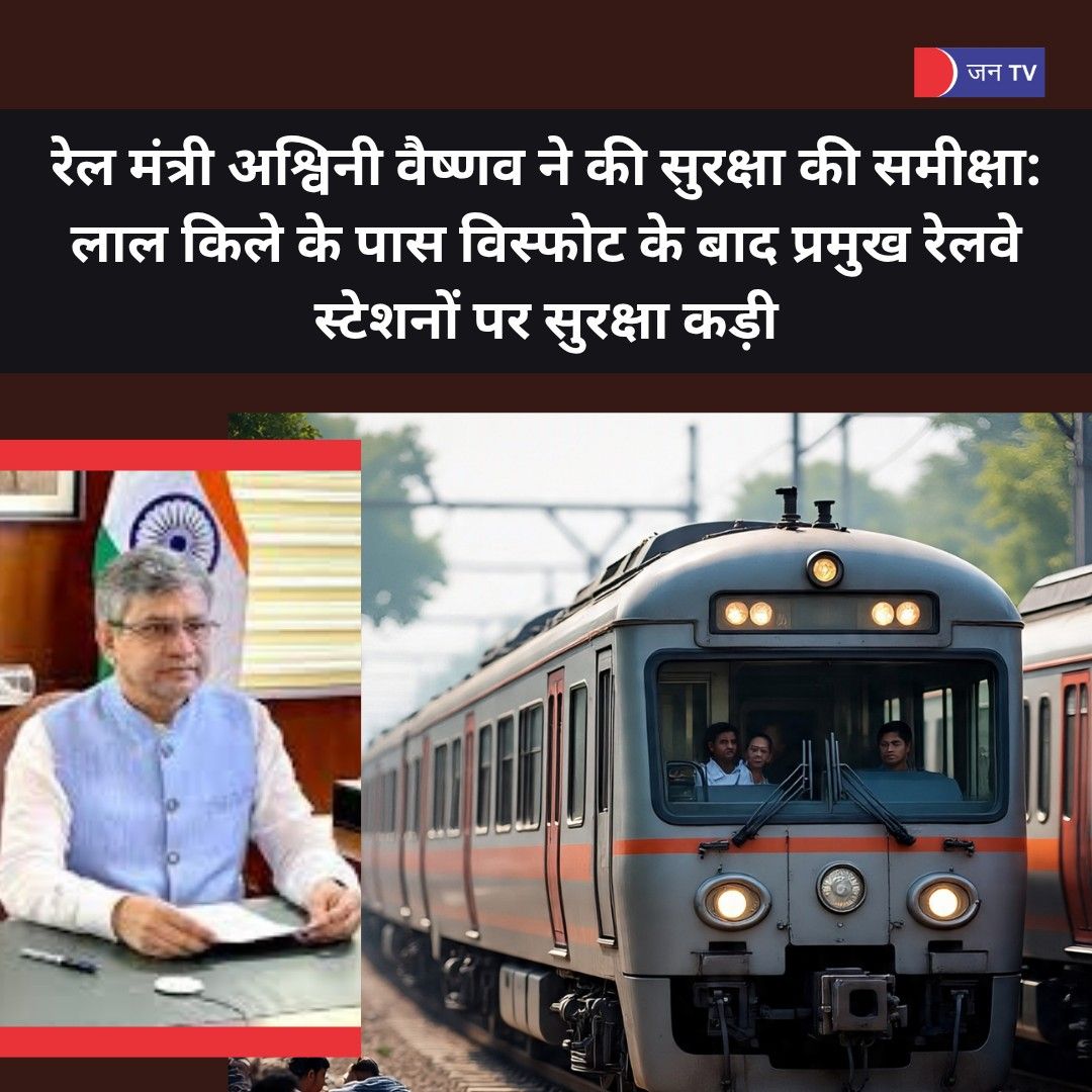 रेल मंत्री अश्विनी वैष्णव ने की सुरक्षा की समीक्षा: लाल किले के पास विस्फोट के बाद प्रमुख रेलवे स्टेशनों पर सुरक्षा कड़ी --- वैष्णव ने सोमवार देर रात ‘एक्स’ पर एक पोस्ट में कहा, ‘‘दिल्ली में हुए विस्फोट से बेहद दुखी हूं। शोक संतप्त परिवारों के प्रति हार्दिक संवेदना और घायलों के शीघ्र स्वस्थ होने की प्रार्थना करता हूं।’’
